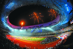 “這是地球的天空中首次用焰火打出漢字。這個意味深長的結(jié)束語,預(yù)示著北京的金色未來,以及奧林匹克的美好前景!睋(dān)綱北京奧運(yùn)會、殘奧會開閉幕式視覺特效藝術(shù)總設(shè)計的蔡國強(qiáng)說。
