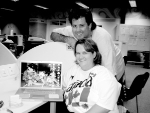鄧斯金夫婦住在威斯汀酒店,步行離主新聞中心只有15分鐘路程。一般他們?cè)缟?時(shí)就起床,吃完早餐后就會(huì)散步去工作室。“這也算是我們的早鍛煉。”吉咪是個(gè)活躍分子,不等提問完便急著回答!笆聦(shí)上,在茫茫人海中找到了我,得算是他的運(yùn)氣。”埃德滿臉堆笑地附和。這是一段浪漫的輪椅情緣。從小,吉咪的夢(mèng)想就是征戰(zhàn)WNBA。性格外向的她在籃球場(chǎng)上總是最引人注目的小明星。但14歲那年的意外車禍,瞬間讓美麗青春變得死氣沉沉。“我的兩條腿都不能動(dòng)了,今后就只能在輪椅上度過余生。那個(gè)時(shí)候,我不是沒想過死。”