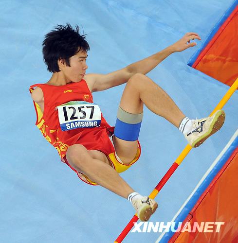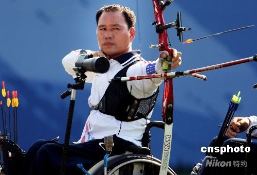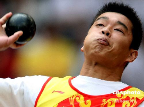 圖:中國選手郭偉鉛球賽場(chǎng)奪金牌破紀(jì)錄