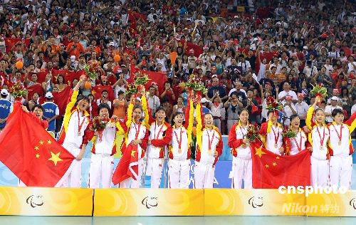 圖:殘奧會(huì)坐式女排中國擊敗美國隊(duì)奪冠