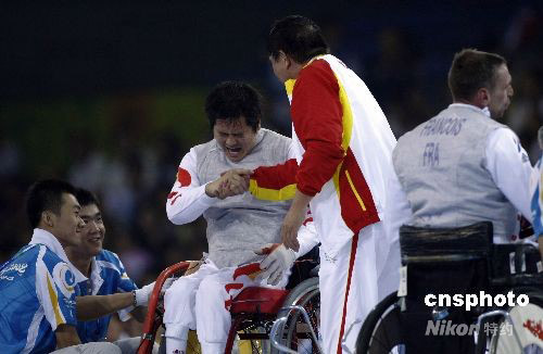 輪椅擊劍男花個(gè)人B級(jí)決賽胡道亮奪冠