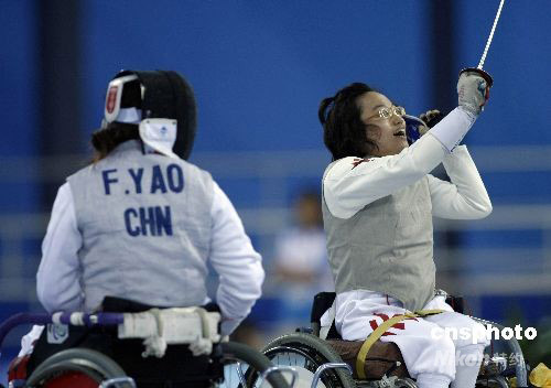 輪椅擊劍女花B級(jí)香港選手陳蕊莊摘金