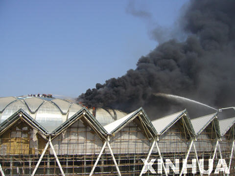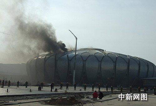 在建的濟(jì)南奧體中心場館再次發(fā)生火災(zāi)(圖)