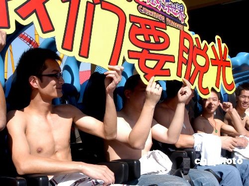 圖:廣州“脫光勇士”挑戰(zhàn)愛情過山車
