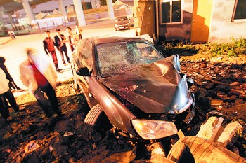 長沙一輛轎車撞進(jìn)基建工地內(nèi)