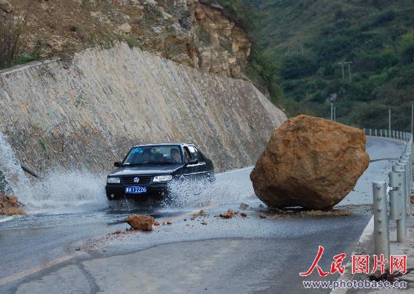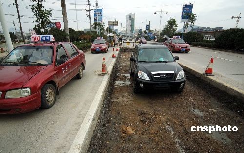圖:維修警示牌被盜 轎車開進坑內(nèi)被困