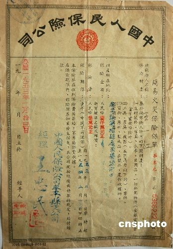 圖:塵封半個世紀的保險單現(xiàn)身山東濱州