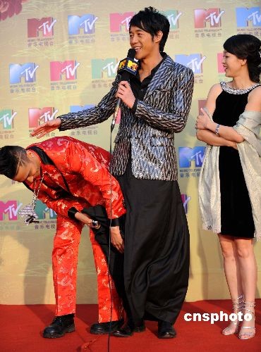 圖:頒獎禮上名模莫萬丹在仲滿面前吐露芳心