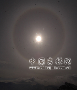 “日暈”多出現(xiàn)在春夏季節(jié)。長白山在深秋出現(xiàn)日暈,更屬難得一見。日暈常常是天氣變化的一種前兆,日暈出現(xiàn)之后,一般都要下雨。10月17日,長白山上是大雪,山下北坡的二道白河、西坡的撫松、南坡的長白及吉林省大部分地方均為大雨,證明“日暈三更雨,月暈午時風(fēng)”的諺語是準(zhǔn)確的。
