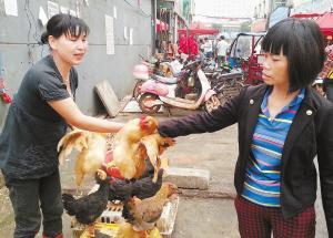 “商販們急得沒辦法,改行賣蔬菜、賣魚!倍兆犹良Q(mào)市場相關負責人介紹,以前他們批發(fā)兼零售,平均日成交活雞約1.2萬只,目前一天成交量才一兩千只。不過這兩天一天比一天多,但要恢復到過去的水平,估計還要一個月時間。