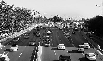 11月3日單雙號(hào)限行期間,早高峰時(shí)段,二環(huán)路上車(chē)流不多 攝/法制晚報(bào)記者 楊益 曹博遠(yuǎn)