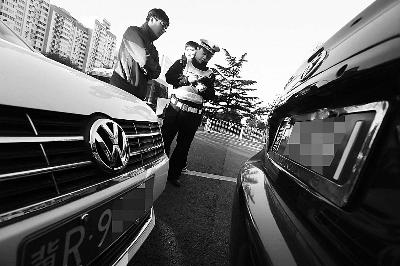 ▲民警正對(duì)闖限行的司機(jī)進(jìn)行處罰 攝/法制晚報(bào)記者 楊益