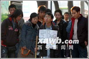 這個(gè)小伙告訴記者,他今年25歲,乞討以來(lái),他已經(jīng)走過(guò)了武漢、北京、廣州、成都、重慶等11個(gè)城市,昨天才來(lái)到第12站西安,準(zhǔn)備在這里待一個(gè)月。