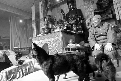 妙行法師的一位徒弟悄悄告訴記者,法師害怕天冷凍著狗,晚上經(jīng)常讓狗到他床上睡,可狗身上會(huì)有虱子,法師嘴里不說,但他每晚都會(huì)沐浴,寺里沒有暖氣,真害怕他著涼感冒了。