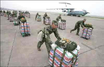 姚恒斌:我們指揮部由成空、空降兵和地方組成。每天晚上我們都要開會(huì),總結(jié)一天的情況,根據(jù)各地物資的需求情況,確定第二天的空降任務(wù)。所有的救災(zāi)物資,通過四川省的民政部門統(tǒng)一輸送到我們這里,然后再統(tǒng)一調(diào)配。(記者 劉薇)