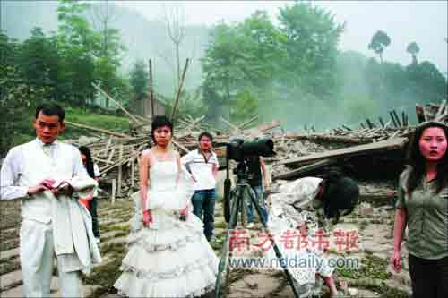 汶川地震以來,不斷有災區(qū)的網友找到上網途徑,講述他們慘痛經歷。前天,一組地震瞬間拍下的婚紗照在網上出現(xiàn),讓觀者如同一起經歷了那個驚心動魄的瞬間。