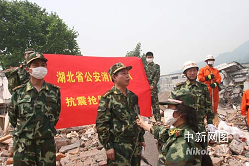 湖北省消防總隊救援隊目前共分為三批,第一批救援隊由曾慶亮副總隊長帶隊,官兵300人,攜帶車輛30臺,各類裝備器材8867件(套),包括生命探測儀、手動(電動)破拆器材組、多功能救援擔(支)架、撐項器、大型升降照明裝置等。隊伍于13日凌晨6時出發(fā),于14日晚乘車到達四川省廣元市。目前,救援隊根據(jù)前線指揮部的統(tǒng)一部署,正對受災(zāi)嚴重的廣元市青川縣關(guān)莊鎮(zhèn)實施緊急救援,由于通訊中斷,目前還無法與救援人員取得聯(lián)系。