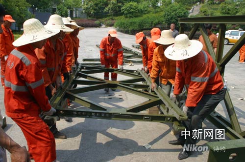 浙江赴川搶險架橋突擊隊員加緊架設鋼橋演練(圖)