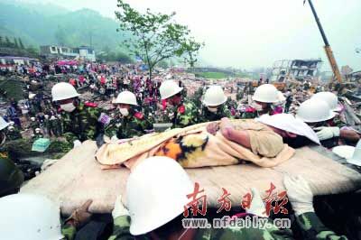 “我一定要找到家里人,死也要死到一起!痹诰d陽(yáng)市開出租車司機(jī)胡女士說。出事后,她開車前往北川找她的愛人。當(dāng)天下午5點(diǎn)多,她趕到時(shí)小縣城已面目全非。胡女士徒步來到愛人上班的新城區(qū),在廢墟上大聲叫著丈夫的名字。終于,丈夫有了回應(yīng):“我在這里,背上有塊大石頭!”胡女士蹲下來說:“不要怕,很快有人來救我們了!睘榱俗寪廴瞬灰?yàn)榭只藕褪а^多昏睡過去,胡女士跪在地上和愛人談起往事,不斷鼓勵(lì)、安慰他。半小時(shí)后,巡邏人員發(fā)現(xiàn)他們,胡的愛人獲救。而胡女士本人,則因?yàn)殚L(zhǎng)時(shí)間跪在一塊碎玻璃上,被割掉一大塊肉。(作者:記者胡亞柱張蜀梅)