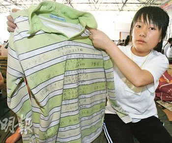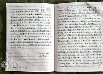 據(jù)香港《明報(bào)》報(bào)道,“沒(méi)有課本,沒(méi)有書桌,我們什么也沒(méi)有!闭鸷蟮谄咛欤∪A和逾千名幸存同學(xué)坐在紙皮上,用大腿墊起日記本,用中文記錄著她們的恐怖往事,用英文展望著北川的美好將來(lái)。