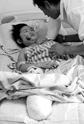 “媽媽?zhuān)业氖帜_呢?”這是昏迷4天的羅穎醒來(lái)后對(duì)媽媽說(shuō)的第一句話(huà)。前日上午10時(shí),看著剛剛醒來(lái)身體還很虛弱的女兒,陳樹(shù)彬眼眶含著淚看著女兒。母女倆相視幾分鐘后,陳樹(shù)彬說(shuō):“穎穎,你的左手和右腿受了很重的傷,已經(jīng)被包扎好了,你身體虛弱所以沒(méi)有感覺(jué),你傷好了,扯了紗布就有感覺(jué)了!甭(tīng)著妻子與女兒的對(duì)話(huà),坐在一旁的袁海轉(zhuǎn)身,抹了一把眼淚,但隨即轉(zhuǎn)過(guò)身,看著女兒望過(guò)來(lái)的目光強(qiáng)顏微笑。(特派記者 李雙全 鐘臻)