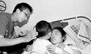 應病中媽媽要求 本報記者救助男孩 部分山路手腳并用 歷時四小時脫離災區(qū) 母子昨日重逢