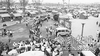 綿陽市城區(qū)在這次地震中直接受損不算嚴重,只是在余震不斷的情況下,市民們基本不敢夜宿家中,因而漂亮的市區(qū)街道兩側,密密麻麻地布滿各式各樣自己搭建的臨時帳篷。正因為受損不重,這座地級市災情最重的北川縣受災群眾理所當然地主要安置于此,而九洲體育館就是該市最大的受災群眾安置點。