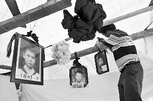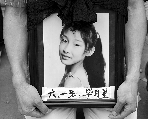 5月21日14時,綿竹市富新第二小學(簡稱“富新二小”)的正門至坍塌校舍之間的道路上,擠滿了前來祭奠遇難學生的家長們。捧于家長胸前的相框內,是127張曾經鮮活的臉。