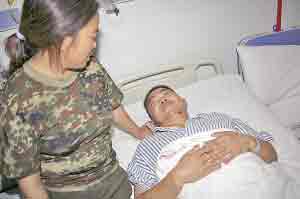 在大坪醫(yī)院,幾乎所有的傷員以及醫(yī)護(hù)人員都知道劉崗均。他就是那個(gè)在沒有麻醉的情況下,硬生生鋸斷腿而從巨石下逃出來的勇敢者。