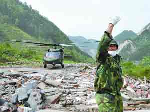 5月19日,空軍某部炮兵科科長戴志強(qiáng)帶領(lǐng)消防員和志愿者徒步15小時(shí)后,趕至位居深山的巴蜀電力金河水電站,成功搜尋并營救14名被困山洞中200余小時(shí)的礦工。