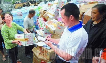 “我們有8個人,分布在大院的幾個方位!彼f,每天,來自云南、重慶、貴陽等全國各地的車輛是一輛又一輛,他們運送的有水、面包、蔬菜。采訪中,記者注意到一個細節(jié),張華峰把捐贈救災(zāi)物資的單位和個人都親切地稱為“客人”,熱情接待,如實記錄。令張華峰感動的是身邊的一些普通人。負責卸貨的武警官兵忙完活之后,他們原地休息,從不喝一瓶救災(zāi)水,吃一塊救災(zāi)面包。等待大卡車裝滿救災(zāi)物資,張華峰將車上物資一一記錄在冊,水50件,方便面60包。洛城村主任方遠福在登記冊上簽完字后,坐上卡車出發(fā)了。