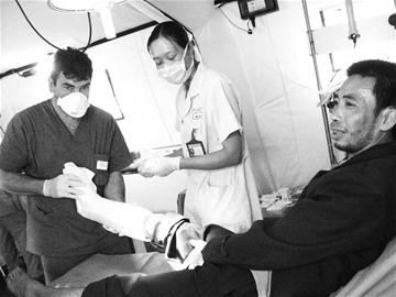 昨日上午10點(diǎn)半,設(shè)在綿竹孝德鎮(zhèn)的意大利醫(yī)療野戰(zhàn)醫(yī)院手術(shù)室里抬進(jìn)了一名在地震中骨折的傷者。汗水從骨科醫(yī)生朱力亞諾·羅迪尼的額頭上滲出來(lái),他一邊比劃著詢(xún)問(wèn)傷者的情況,一邊用藥物清洗已經(jīng)感染的部位。此刻,對(duì)朱力亞諾·羅迪尼這樣的國(guó)際志愿者來(lái)說(shuō),他只知道自己是醫(yī)生,他要醫(yī)治好更多的傷者。