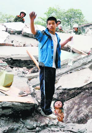 李陽并不特別出眾,如果不是這場大地震,他的日子應該會平靜流過。但是這個男孩在這場大地震中“非比尋!钡呐e動,卻成為一個關于生命和希望的符號。