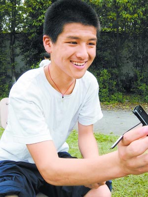 “李陽從重慶回來了!痹谖挥诰d陽長虹培訓中心的北川中學復課點門口,同學們這樣半開玩笑地打趣,“這小子都成名人啦!”記者來到他所住的學生帳篷內(nèi),人不在,想到他是個酷愛籃球的孩子,于是決定到籃球場去碰碰運氣。略有些簡陋的籃筐下,幾個男生正玩得不亦樂乎,場上身手最敏捷的那個果然就是李陽。