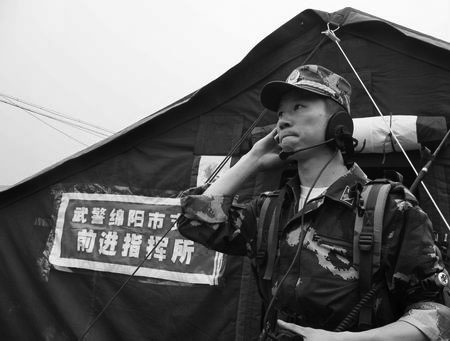 5月12日下午3點(diǎn)多,武警綿陽(yáng)支隊(duì)政委徐超,帶著200名突擊隊(duì)員,向北川進(jìn)發(fā)。從出發(fā)到抵達(dá)北川中學(xué),突擊隊(duì)有一半的時(shí)間徒步前進(jìn)。隊(duì)伍中,有一個(gè)人與其他人不同,他的背上背著通信設(shè)備。他叫陸葦,當(dāng)兵8年,二級(jí)士官,是武警綿陽(yáng)支隊(duì)警衛(wèi)通信中隊(duì)通信班班長(zhǎng),也是該支隊(duì)彼時(shí)前往北川救援時(shí)惟一的通信兵。跳過(guò)一塊又一塊橫亙?cè)诼分械木奘,陸葦夾在隊(duì)伍當(dāng)中奔跑,他聽到自己心中有個(gè)聲音在喊:“快一點(diǎn),再快點(diǎn)!”