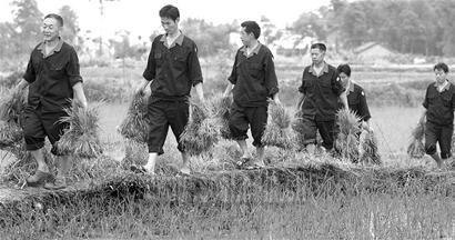 昨日上午,一支由12人組成的志愿者隊找到曾世明:“能不能為你做點兒事?”走在前面的是名40歲左右的男子,他叫靳少云。讓曾世明意外的是,靳少云竟是重慶某公司的總經(jīng)理。跟在他身后的11名男子,都是這家公司的高管。曾世明“很不放心”地把靳少云等人帶到田間,這12名志愿者挽起褲管下田了。拔秧、插秧,一行人干得非常熟練,要不是看到穿在他們身上的統(tǒng)一著裝以及粘貼在他們衣服上的紅十字會標記,還很難讓人聯(lián)想到,他們是呆在辦公室內(nèi)的白領(上圖)。幾個小時后,2畝左右的水田披上了“綠裝”。(記者王仁剛鐘蓉 攝影譚曦)