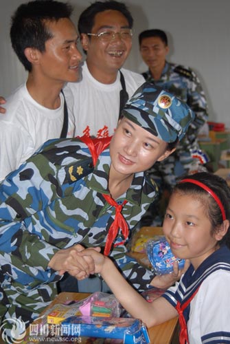 海軍少將宋祖英赴四川綿竹和小學(xué)生過兒童節(jié)(圖)(2)