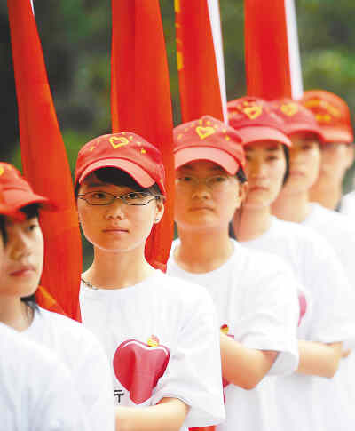地震發(fā)生后,這里陸續(xù)收治了160多名傷員,其中有10多名孩子,大多是用直升機(jī)從汶川映秀鎮(zhèn)運(yùn)出來(lái)的。剛來(lái)的時(shí)候,孩子們都不說(shuō)話,目光呆滯。志愿者把這些孩子編入“愛(ài)心學(xué)!,所有隊(duì)員對(duì)他們包干負(fù)責(zé)。
