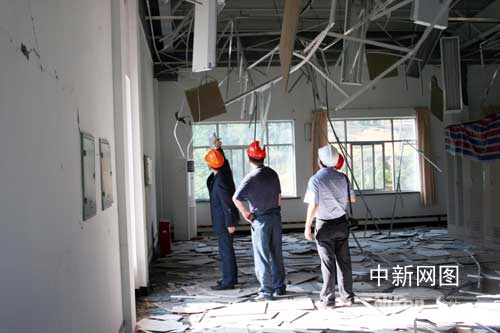 甘肅設(shè)計院技術(shù)人員察看早陽變電站主控樓受損情況。作 者:邱福榮
