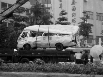 “我看見墻角冒出渾水,感覺圍墻就要倒了。馬上讓司機(jī)往前開,但車開動不過10多秒,圍墻就真的倒了!弊蛱煸缟7時30分,虎門三中校門左側(cè)的一段圍墻在大雨中倒塌,重慶人彭必輝所乘坐的面包車也被磚石砸中;㈤T鎮(zhèn)有關(guān)部門稱,圍墻倒塌事故造成兩人死亡,13人受傷,兩名死者均為該校學(xué)生。