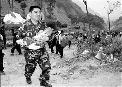 5月12日汶川大地震一天后的13日中午,江蘇黃埔再生資源利用公司董事長陳光標就已從武漢趕到了都江堰,他和公司員工們帶過去的60臺挖掘設備,“第一時間”趕到災區(qū)。在接下來的20多個日夜,陳光標寸步?jīng)]有離開,他親自救出了12名幸存者,背出了208個遇難孩子的遺體……陳光標不是“中國首富”,連“南京首富”都算不上,但去年他捐出了1.8億元,名列2008年中國慈善排行榜榜首,被稱為“中國首善”。