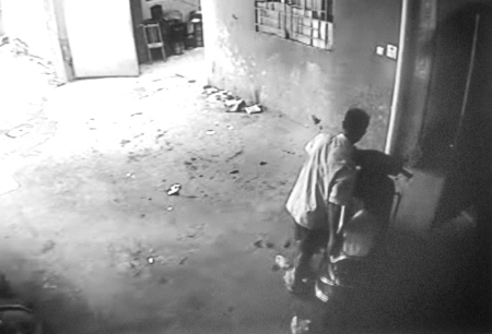 “這個(gè)人很了解這里的情況,”鄭先生說(shuō),他知道鐵門(mén)自動(dòng)關(guān)閉的響聲會(huì)驚動(dòng)樓上的人,所以用鐵門(mén)下面的磚頭頂住鐵門(mén)。