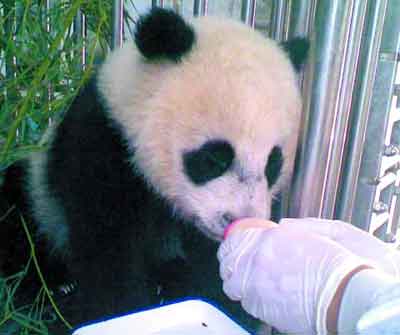 在陜西省寶雞市太白縣被營救的野生大熊貓6日被送到省大熊貓搶救中心后,一直拒絕人工飼養(yǎng),到現(xiàn)在也不進(jìn)食,任憑大家用各種食物引誘,就是不吃。