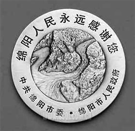 7月20日,東北大學教授趙琛為綿陽設計的抗震紀念章正式亮相。7月23日,已有7箱共1050枚紀念章從北京運抵綿陽,這是目前全國第一枚抗震紀念章。