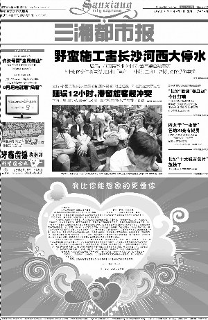“哇,這可是封昂貴的情書! 平常很少看廣告的小余發(fā)現(xiàn),30日的《三湘都市報》有點不同,頭版用半個版的篇幅刊登了一封《我比你能想象的更愛你》,深情款款的文字配上溫馨淡雅的心形圖案,表達(dá)了男主角“帥”對女主角“盈”“處在崩潰的邊緣”的思念之情。