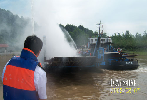 中新網(wǎng)武漢8月7日電 (費(fèi)? 石博宇 徐金波)為提高人民群眾反恐和水上安全意識(shí),確保奧運(yùn)期間轄區(qū)安全,武漢海事局咸寧海事處會(huì)同長(zhǎng)航公安局嘉魚派出所、赤壁市赤壁鎮(zhèn)派出所、洪湖市烏林鎮(zhèn)派出所和洪湖金迪汽車渡運(yùn)有限公司等單位,在北京奧運(yùn)會(huì)開幕前夕組織開展了“二地五方”水上反恐、消防聯(lián)合應(yīng)急演習(xí)。