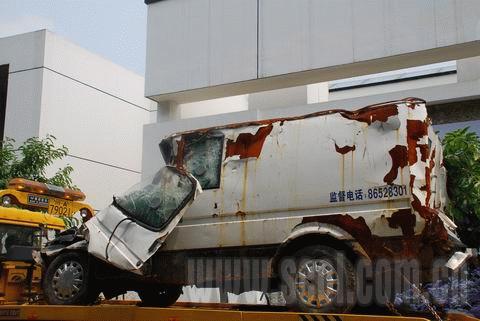 昨(17)日,建川博物館又新增一件地震文物,中國銀行都江堰支行將一輛在地震中損毀的運鈔車運抵建川博物館“5·12汶川大地震特展”現(xiàn)場。
