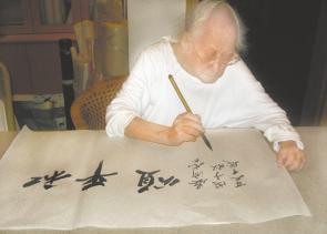 晏老提筆寫(xiě)下了“和平頌”三個(gè)字