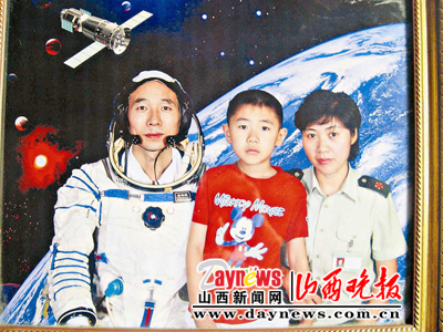 景海鵬和妻子張萍、兒子景宇飛在神六發(fā)射時(shí)的合影