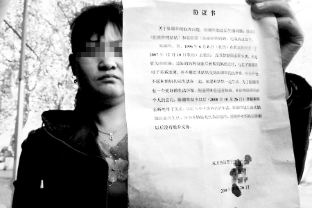 因為這份協(xié)議不合法,鄭州市公證處不予公證。為了讓協(xié)議具有效力,劉紅和王麗在簽字上面按上指印。按上指印后,王麗突然咬著嘴唇,淚珠大顆大顆掉了下來。她匆匆在一張協(xié)議上按了指印后,死活也不愿在另外兩張上面按了,并開始大罵她的丈夫王濤。門外圍了一圈鄰居。大家七嘴八舌勸道:“何必這樣呢,兩家人商量個辦法,一塊來照顧孩子。不管怎樣,要為孩子想想。”王濤把其他人往店外推:“沒事沒事,放心吧,她現(xiàn)在不按,回頭我會勸她!